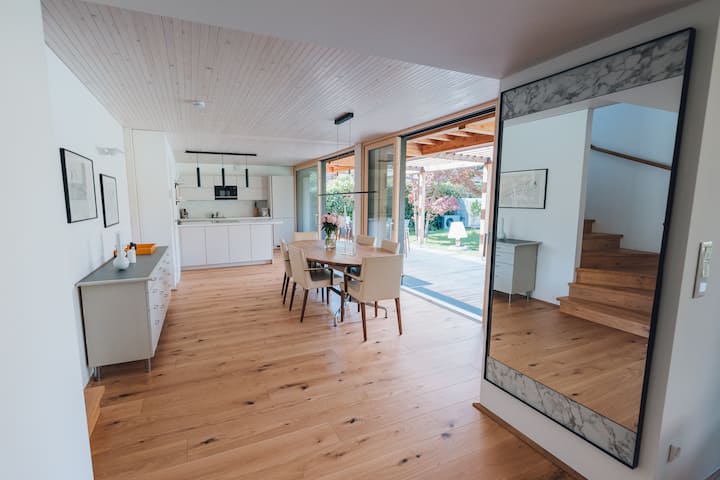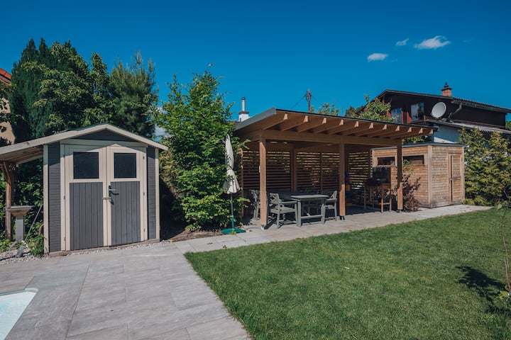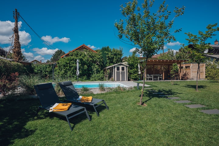 เราหวังว่าจะได้ต้อนรับคุณสู่บ้านที่เหมาะกับครอบครัวของเรา ด้วยพื้นที่ใช้สอย 200 ตร.ม. (กระจายอยู่บน 3 ชั้น) และสวน 400 ตร.ม. คุณจะได้ใช้เวลาที่ยอดเยี่ยมกับคนที่คุณรัก บ้านของเรามีพื้นที่สำหรับผู้ใหญ่ 4 คนเด็ก 2 คนและทารก 1 คน ในสวนมีสระว่ายน้ำรวมถึงที่นั่งและพื้นที่อาบแดด มีพื้นที่สปาที่ชั้นใต้ดิน เดิน 7 นาทีจะพาคุณไปยังริมฝั่งแม่น้ำดานูบซึ่งคุณจะได้พบกับร้านอาหารและผู้ให้บริการกิจกรรมที่ยอดเยี่ยม