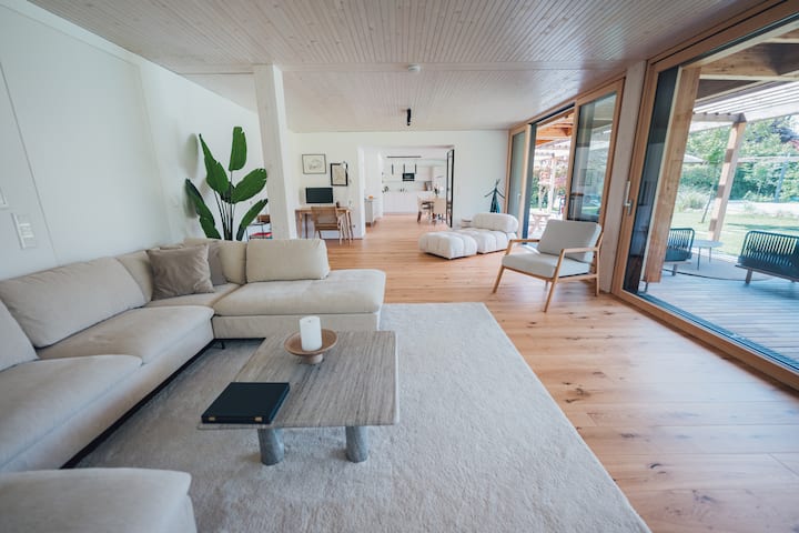 - ห้องครัวแบบเปิดโล่งพร้อมพื้นที่รับประทานอาหารและห้องนั่งเล่นทุกห้องมีระเบียงและสวน บนทีวีในห้องนั่งเล่นคุณสามารถดูภาพยนตร์และซีรีส์ด้วยช่องสตรีมมิ่งของคุณเอง