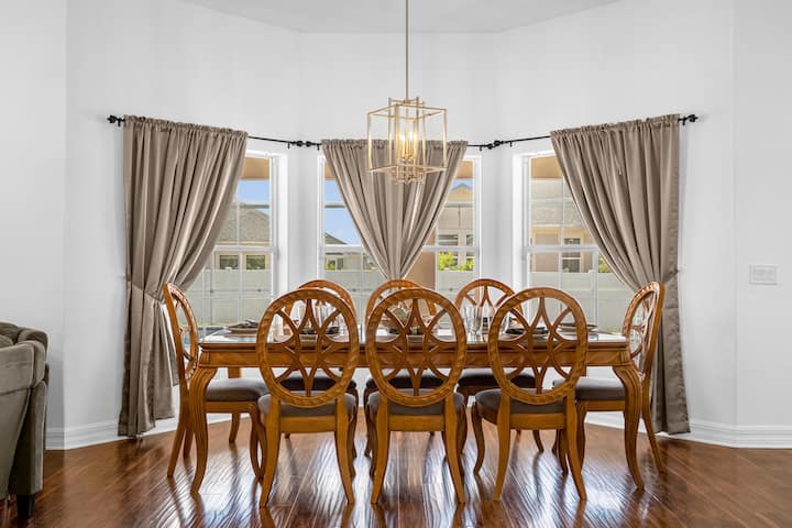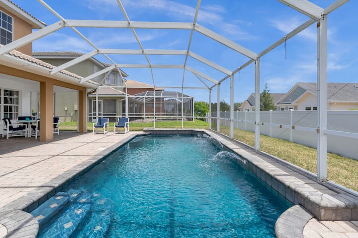 บ้านกว้างขวาง 5 ห้องนอน 4 ห้องน้ำของเราตั้งอยู่ในชุมชนที่มีรั้วรอบขอบชิดซึ่งอยู่ห่างจากสถานที่ท่องเที่ยวในสวนดิสนีย์ประมาณ 30 นาที บริเวณสระว่ายน้ำขนาดใหญ่มีลาไนปกคลุมขนาดใหญ่และสระว่ายน้ำมองออกไปยังสวนดิสนีย์ซึ่งในเวลากลางคืนคุณจะเห็นดอกไม้ไฟ