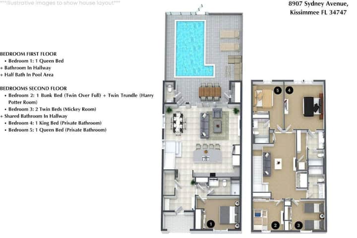 ทาวน์โฮม 5 ห้องนอนที่ยอดเยี่ยมพร้อมสระว่ายน้ำส่วนตัวและห้องพักธีม (WW8907)