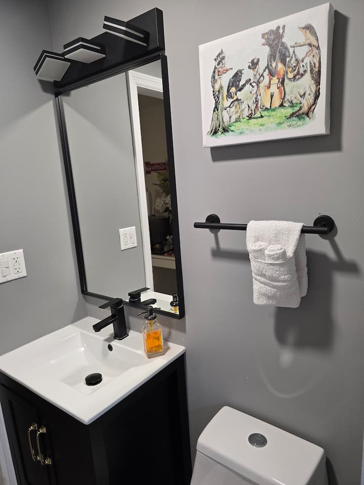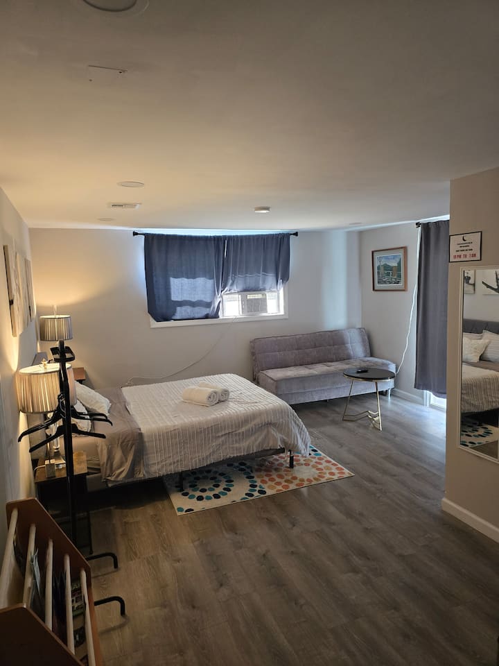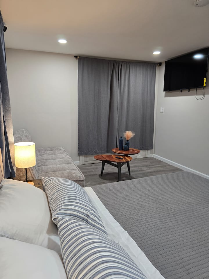 ห้องนอนส่วนตัวในนิวเจอร์ซีย์พร้อมห้องน้ำและทางเข้าส่วนตัว