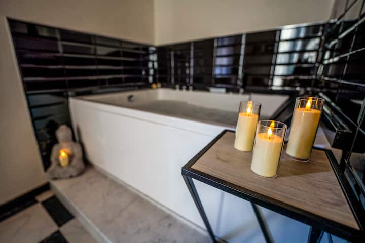 ห้องพักที่หรูหราพร้อมอ่างน้ำวนส่วนตัว