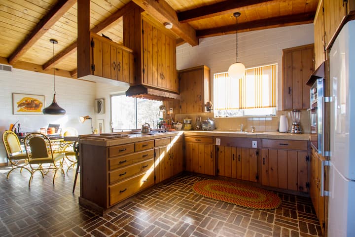 เรามาจากซินซินนาติ แต่อาศัยอยู่ในลอสแอนเจลิสมา 30 ปีก่อนที่จะย้ายไปอยู่ที่โจชัวทรีในปี 2020 ลอร่าเป็นครูสอนโยคะและศิลปิน การออกแบบและวัตถุวินเทจเป็นความหลงใหลของเราและเราโชคดีที่ได้พบบ้านจากช่วงปลายยุค 50 ที่ยังคงมีลักษณะเดิมอยู่ เรามุ่งมั่นที่จะสร้างความรู้สึกของการเดินทางข้ามเวลาสำหรับผู้เข้าพักผ่านการตกแต่งและการตกแต่งที่คัดสรรมาเป็นอย่างดี และรักการต้อนรับผู้เข้าพักหลายพันคนในช่วง 11 ปีที่ผ่านมา