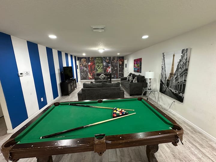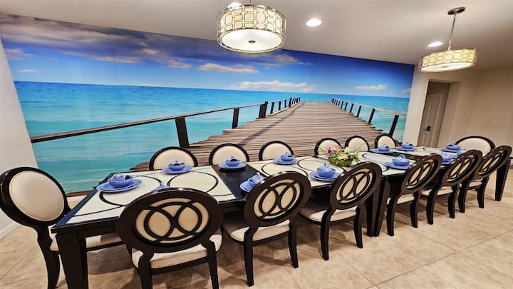 ที่พัก 8 ห้องนอน 6 ห้องน้ำสุดพิเศษแห่งนี้จะทำให้คุณประหลาดใจในแต่ละเทิร์น ด้วยพื้นที่ในร่มขนาด 4000 ตารางฟุตและสระว่ายน้ำส่วนตัวและสปาครอบครัวของคุณจะเพลิดเพลินกับพื้นที่กว้างขวางและบรรยากาศที่ผ่อนคลายของบ้านหลังนี้ ก้าวเข้าสู่ความหรูหราเมื่อเข้ามาในบ้าน ปูกระเบื้องทั่วพื้นที่นั่งเล่นหลักคุณจะประทับใจกับเฟอร์นิเจอร์หรูหราทันทีการตกแต่งที่ได้รับการตกแต่งอย่างดีและความหรูหราที่ไม่มีที่สิ้นสุดของบ้าน