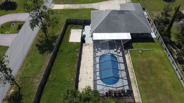 สวนหลังบ้านมีสระว่ายน้ำลาไนที่ได้รับการคัดกรองอย่างเต็มที่เก้าอี้ adirondack 4 ตัวเก้าอี้เลานจ์ 4 ตัวและพื้นที่นั่งเล่นแยกต่างหาก 2 แห่ง ผ่อนคลายในขณะที่เด็กๆว่ายน้ำเพลิดเพลินกับเกมบนทีวีขนาด 65 นิ้วบาร์บีคิวบนเตาย่างแก๊สหรือแม้แต่ย่างมาร์ชเมลโลว์บนโต๊ะกาแฟ เพลิดเพลินไปกับเกมคอร์นโฮลหรือจัมโบ้คอนเนค 4!