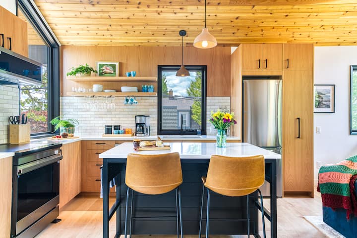 ตื่นขึ้นมาพักผ่อนอย่างเต็มที่และเปิดม่านบนหน้าต่างจากพื้นจรดเพดานเพื่อรับแสงยามเช้า เพลิดเพลินกับห้องครัวเต็มรูปแบบและอ่างแช่ตัวในบ้านที่ออกแบบโดยสถาปนิกที่น่าทึ่งเหมาะสำหรับนักชิมคู่รักและการทำงานทางไกล ทำเลที่ตั้งดีเยี่ยมห่างจากร้านเบเกอรี่ร้านค้าสวนสาธารณะและห้องอาบน้ำเพียงไม่กี่ก้าว
