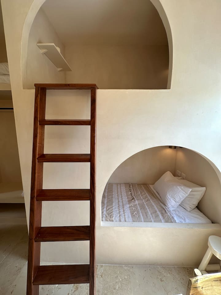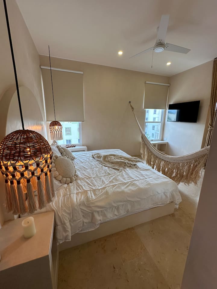 ก้าวเข้าสู่ Tulum Cinderella สถานที่พักผ่อนสไตล์โบฮีเมียนที่ได้รับการคัดสรรมาอย่างสวยงาม ที่ซึ่งเฟอร์นิเจอร์ที่ทำด้วยมือ พื้นผิวที่เข้มข้น และองค์ประกอบทางธรรมชาติรวมกันเพื่อสร้างบรรยากาศที่ผ่อนคลายและมีศิลปะ พื้นหินอ่อนประกบกับผนังชูคัมสร้างสรรค์ออกแบบสุดสะดุดตา ห้องนอนแต่ละห้องมีสไตล์ไม่เหมือนใคร ไม่ใช่แค่ที่นอน แต่เป็นประสบการณ์