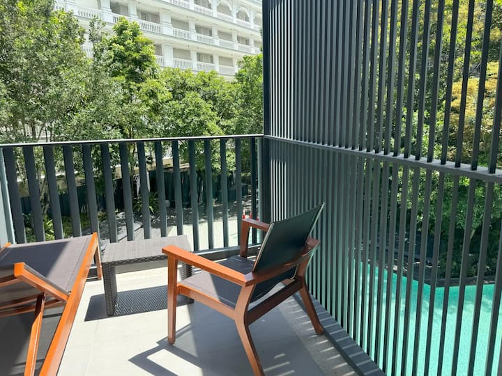 ทำเลดีเยี่ยมและสระว่ายน้ำวิวทะเล 2 ห้องนอนที่เด็ค