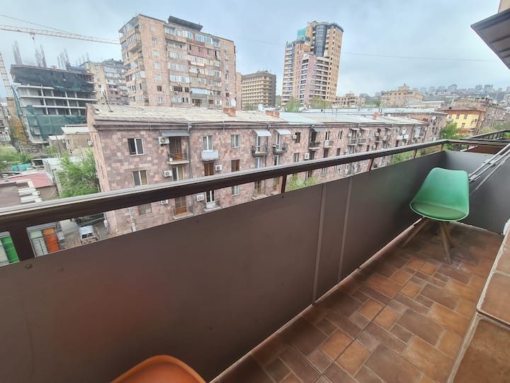อพาร์ทเมนท์ 2 ห้องนอนที่สว่างไสวพร้อมระเบียง – ใจกลางเยเรวาน