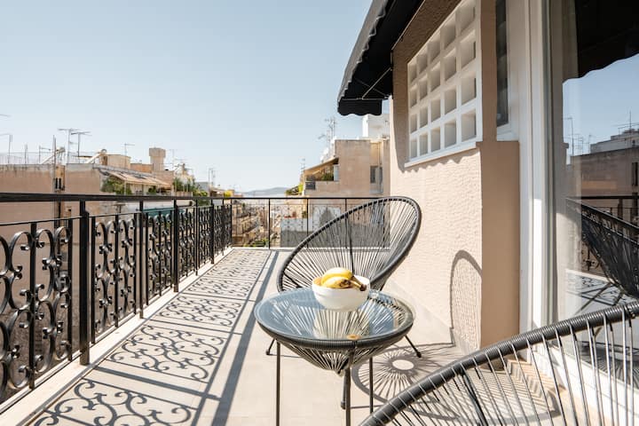 เพนท์เฮาส์ในเอ็กซาร์เคีย ระเบียง ห้องออกกำลังกาย และร้านอาหาร