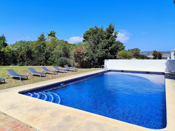 วิลล่าที่น่าสนใจพร้อมสระว่ายน้ำส่วนตัวที่ได้รับการปรับปรุงใหม่ทั้งหมดทันสมัยและสะดวกสบายด้วยทำเลที่ตั้งที่ยอดเยี่ยมมองเห็นทะเลและ Montgó ใน Jávea