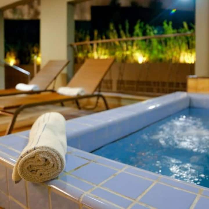 นี่เป็นหนึ่งในที่พักไม่กี่แห่งของย่านนี้ที่มีสระว่ายน้ำ