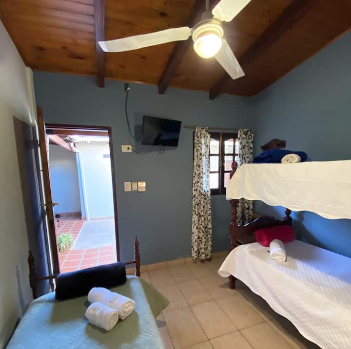 ห้องพักสำหรับ 3 คนที่สะดวกสบายและมีสิ่งอำนวยความสะดวกครบรอบ