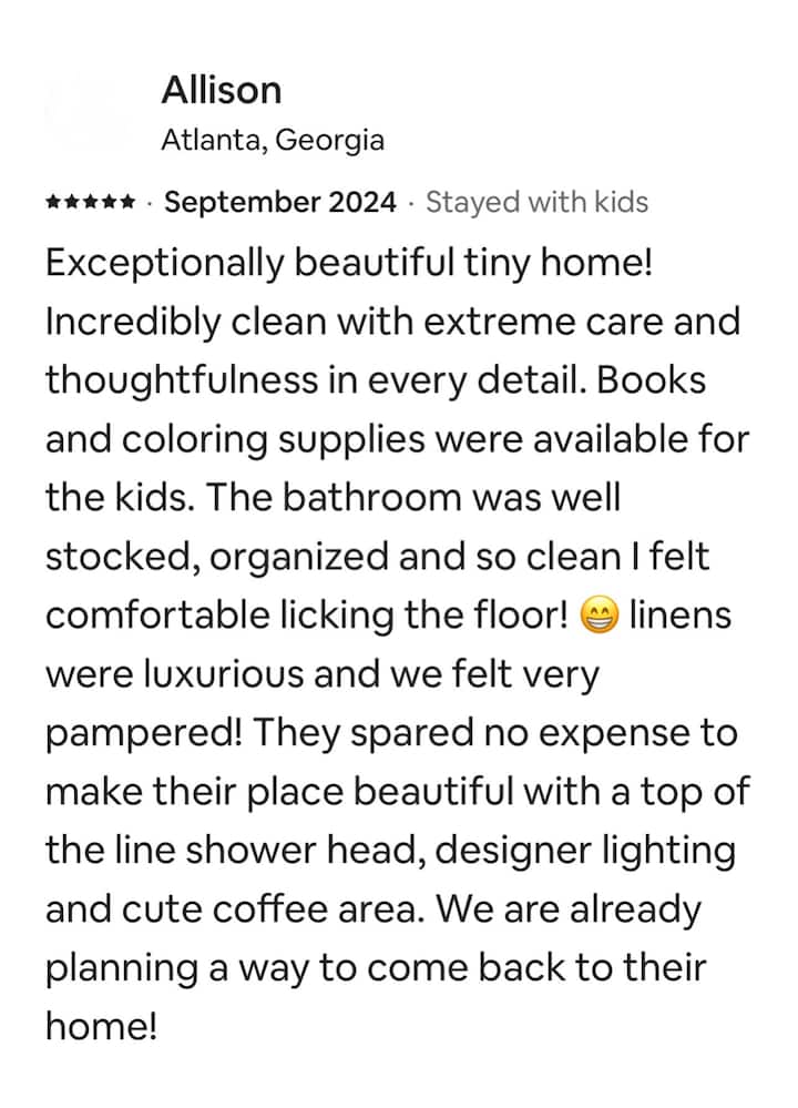 สัตว์ช่วยเหลือ: บ้านหลังเล็กๆเป็นบ้านหลังที่สองของครอบครัวเราซึ่งเราไปเยี่ยมบ่อยๆ เด็กคนหนึ่งของเราได้รับภูมิคุ้มกันเนื่องจากการเจ็บป่วยที่รุนแรงและอาการจะรุนแรงขึ้นเมื่อระบบภูมิคุ้มกันของเธอถูกกระตุ้นโดยสารก่อภูมิแพ้ (รวมถึงสัตว์เลื้อยคลาน) รวมถึงความเจ็บป่วย ด้วยเหตุนี้เราจึงได้รับยกเว้นจาก Airbnb สำหรับสัตว์ช่วยเหลือ เราเข้าใจกฎหมายของรัฐเทนเนสซีและกฎหมายของรัฐบาลกลางเกี่ยวกับสัตว์ช่วยเหลืออย่างไรก็ตามเราขอให้คุณคำนึงถึงความเจ็บป่วยของเด็กของเราก่อนจองที่พักกับสัตว์ช่วยเหลือ ขอขอบคุณที่เข้าใจ