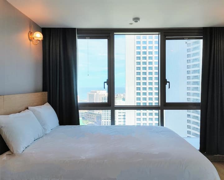 [ST_30] ที่พักถูกกฎหมาย!วิวทะเลจากชั้นสูง! สถานีรถไฟใต้ดิน 2 นาที ชายหาด 5 นาที ตลาดเก่า 3 นาที! เตียงควีนไซส์ 2 เตียง!