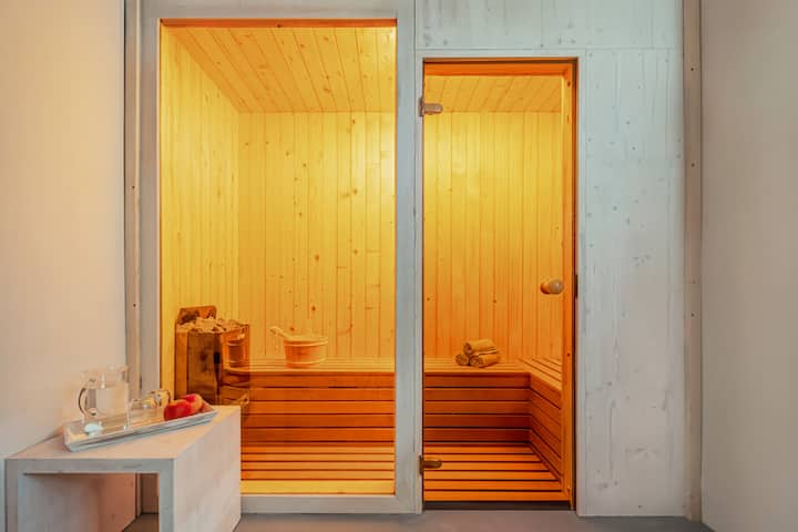 พักผ่อนในคอทเทจพร้อมอ่างน้ำร้อนและซาวน่า
