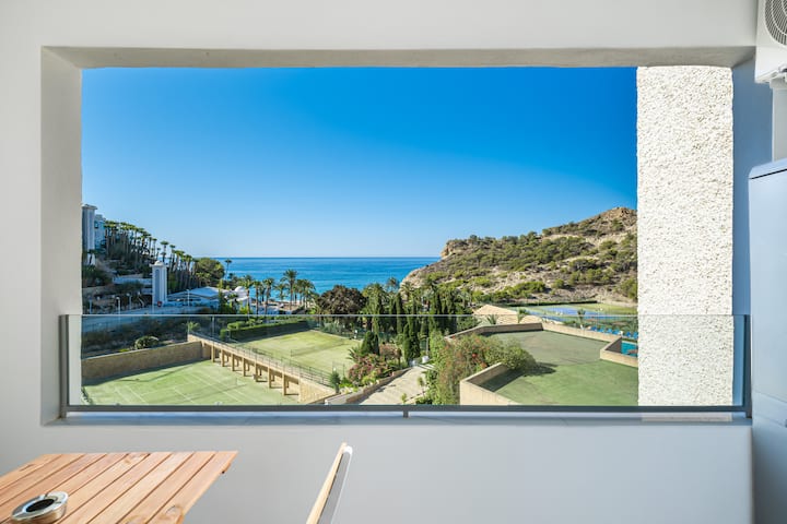 อพาร์ทเมนท์ในคอมเพล็กซ์ยูโรเทนนิสริมชายหาดที่เข้าถึงชายหาดได้โดยตรงในวิลลาจอยโอซา 5 นาทีโดยรถยนต์จากเบนิโดร์ม มี 1 ห้องนอนและรองรับได้ 3 คน