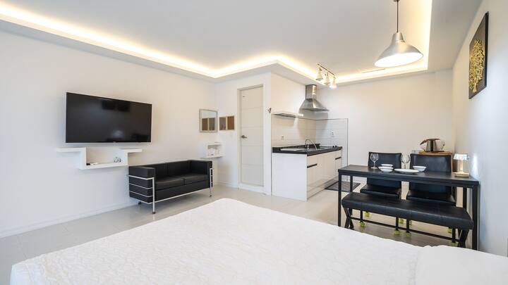 - ประเภทห้องเดียว: 1 ห้องนอน (ควีนไซส์) + ห้องครัว + ห้องสุขา