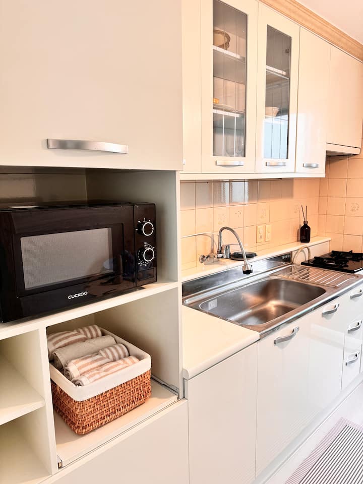Love house [เตียงคิงไซส์ + เตียงเดี่ยว อพาร์ทเมนท์ 2 ห้อง 60 นิ้ว TV + Netflix, Disney + YouTube]