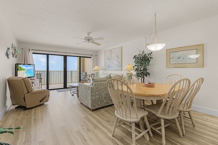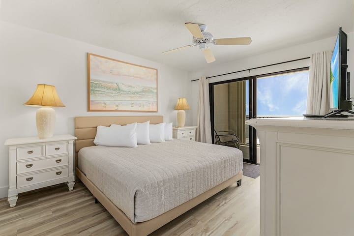 เข้าทางประตูหน้าไปยังห้องโถง/โถงทางเดิน มีพื้นไม้ที่สวยงามตลอดทั้งหลังยกเว้นกระเบื้องในห้องซักรีดและห้องน้ำ ก้าวเข้าสู่ห้องครัวแบบเปิดโล่งห้องรับประทานอาหารและพื้นที่นั่งเล่น ห้องครัวมีอุปกรณ์ครบครันรวมถึงเครื่องชงกาแฟ Keurig เครื่องเคลือบแก้วและเตาอบทำความสะอาดตัวเองเตาไมโครเวฟแบบบิวท์อินเหนือตู้เย็น/ตู้แช่แข็งเคียงข้างกันพร้อมเครื่องจ่ายน้ำแข็งและน้ำในประตูเครื่องล้างจานและอ่างล้างจานสแตนเลสคู่พร้อมการกำจัด มีตู้มากมายและด้านบนเคาน์เตอร์พื้นผิวแข็งที่มีผนังกันเปื้อน มีทุกอย่างที่คุณต้องใช้ในการทำอาหารค่ำแบบหลายคอร์สทุกวันหรือเพียงแค่ชงกาแฟสักแก้วในตอนเช้า แค่เอาอาหารมาให้! บาร์คาบสมุทรแยกห้องครัวออกจากพื้นที่รับประทานอาหาร โต๊ะอาหารรองรับได้ 6 ที่นั่ง ห้องนั่งเล่นตกแต่งอย่างดีด้วยโซฟาและที่นั่งเล่นโต๊ะข้างเตียงพร้อมโคมไฟโต๊ะกาแฟเบาะหนังและทีวีจอแบน ที่พักนี้มีเตียงเด็กแบบพับเก็บได้สำหรับผู้ที่เดินทางพร้อมเด็กเล็ก ประตูกระจกบานเลื่อนนำไปสู่ระเบียงยาวเต็มรูปแบบที่มองเห็นชายหาดเพียงไม่กี่ก้าว ที่ชั้น 6 ด้านบนมีวิวที่ยอดเยี่ยมของชายหาดอ่าวและต้นปาล์มที่แกว่งไปมาในสายลม