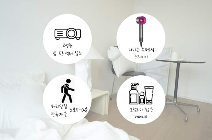 หมู่บ้านฮันอก Gaekridan-gil 5-10 นาที, ป้ายรถเมล์ 2 นาที, ร้านสะดวกซื้อ 1 นาที