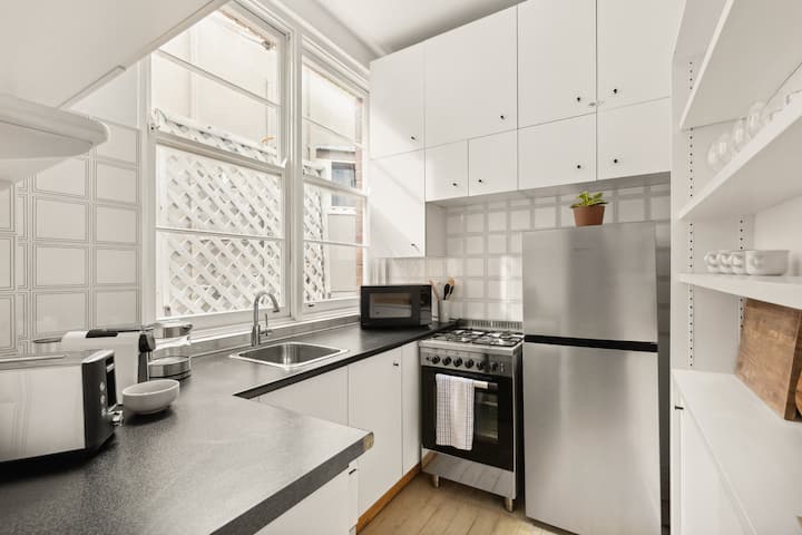 อพาร์ทเมนท์แห่งนี้มีวิวทิวทัศน์ที่ส่องแสงระยิบระยับเหนืออ่าวซิดนีย์รวมถึงสะพานซิดนีย์ฮาร์เบอร์ที่โดดเด่นและโรงอุปรากรซิดนีย์เป็นสถานที่พักผ่อนที่หาได้ยากในท้องถิ่นสำหรับคู่รักหรือนักเดินทางคนเดียว ตั้งอยู่ในย่านที่มีชีวิตชีวาของพอทส์พอยท์ซึ่งเป็นที่ตั้งของร้านอาหารทันสมัยที่สุดของเมืองบนถนนแมคเลย์แกลเลอรี่และโรงละคร หากคุณมาที่นี่ในวันหยุดสุดสัปดาห์อย่าพลาดคิงส์ครอสมาร์เก็ตยอดนิยมในแต่ละวันเสาร์ กลับบ้านเพลิดเพลินกับห้องครัวเต็มรูปแบบและระเบียงดาดฟ้าพร้อมการรับประทานอาหารกลางแจ้ง