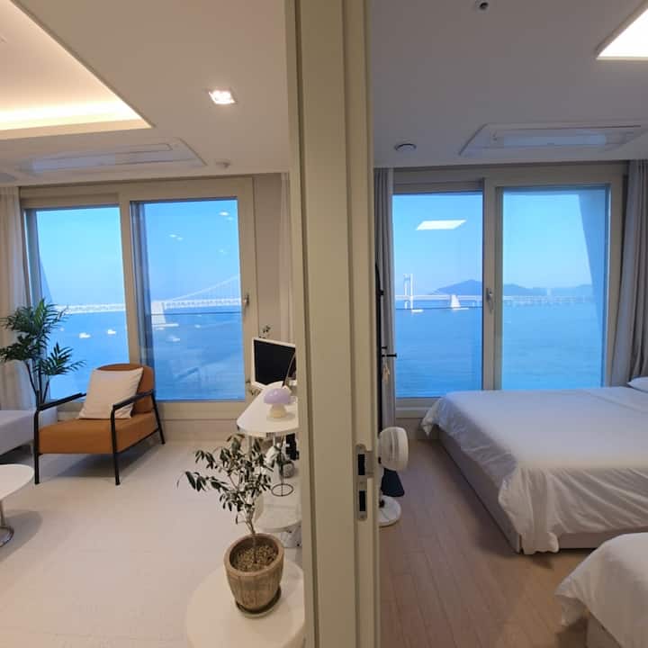 วิวทะเลกวางอันแดพูล/เครื่องนอนโรงแรม/ติดกับมิลแลคมาร์เก็ต/ที่พักเฮลลิ่ง/สูงสุด 6 คน/2 ห้องนอน/3 เตียง/น้ำดื่ม/ที่จอดรถฟรี