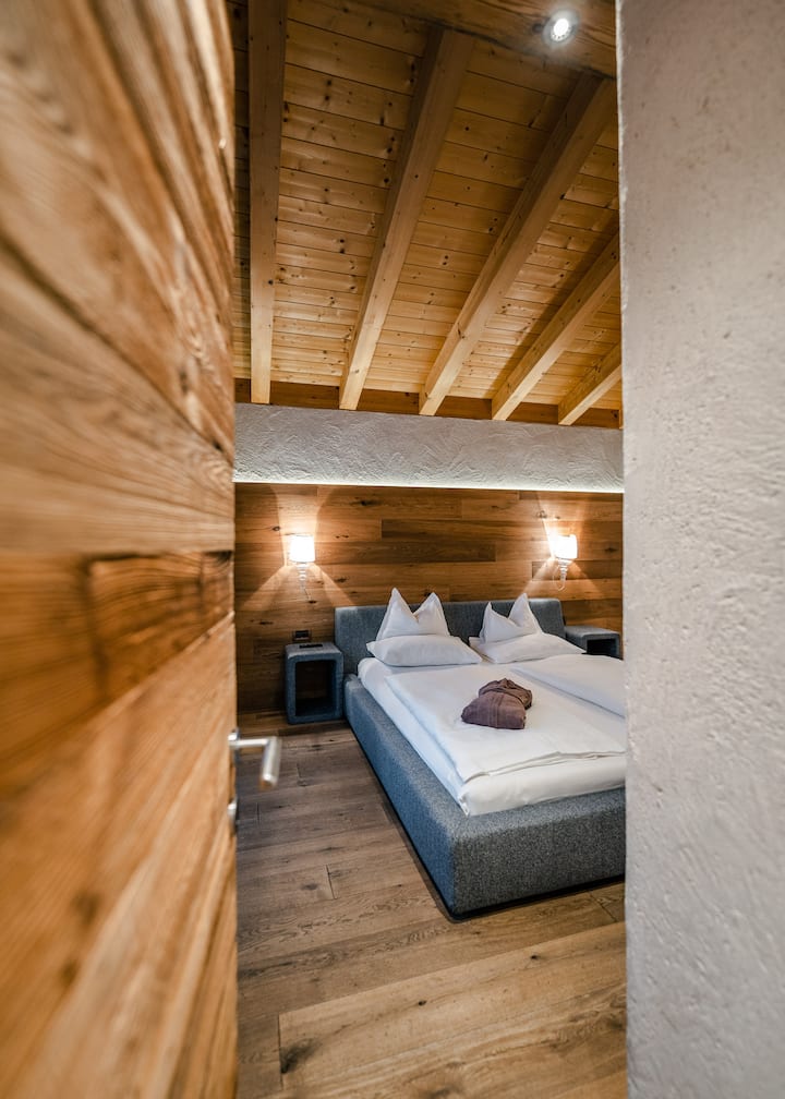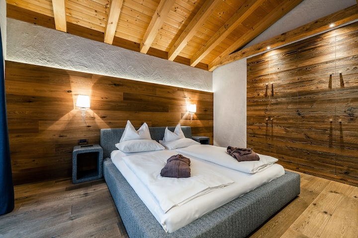 เราตั้งตารอคอยที่จะต้อนรับคุณในห้องสวีทที่มีเอกลักษณ์ของเราล้อมรอบด้วย Dolomites อันงดงาม