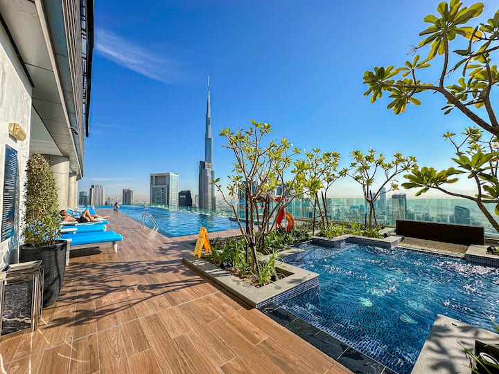 ➞ สระว่ายน้ำ: ตั้งอยู่บนชั้น 64 สระว่ายน้ำแบบอินฟินิตี้ที่สูงที่สุดในดาวน์ทาวน์ดูไบ