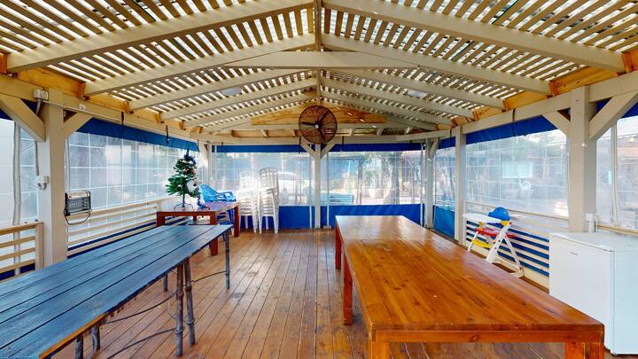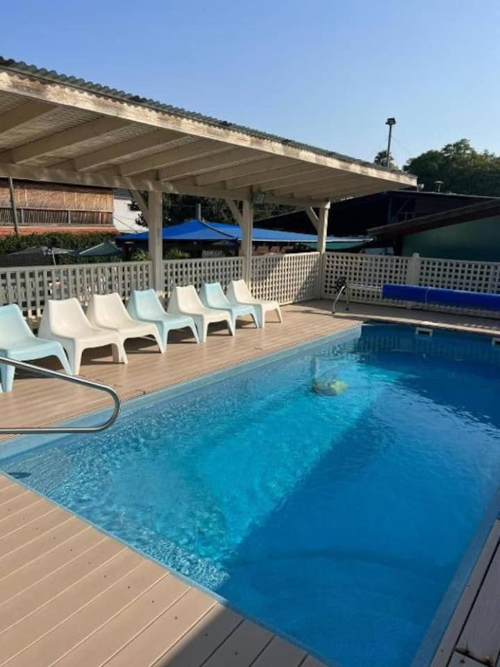 นี่เป็นหนึ่งในที่พักไม่กี่แห่งของย่านนี้ที่มีสระว่ายน้ำ