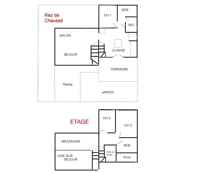 เราขอเสนอ บ้านเดี่ยวสองชั้นขนาดกว้างขวางสวยงาม พื้นที่ 90 ตารางเมตร ตั้งอยู่ในหมู่บ้านจัดสรรส่วนตัวขนาดเล็ก เงียบสงบ ปราศจากเสียงรบกวน สามารถรองรับผู้เข้าพักได้ 8 คนอย่างสะดวกสบาย (ผู้ใหญ่ 6 คน + เด็ก/วัยรุ่น 2 คน) ด้วยห้องนอนแยก 4 ส่วน (ดูแผนผังในรูป) ==> 3 ห้องนอนมีเตียงคู่ + 2 เตียงเดี่ยวในชั้นลอย (ความสูงต่ำเพียง 1.40 เมตร แต่พื้นที่ชั้นล่าง 16 ตารางเมตร) ซึ่งจะทำให้เด็ก/วัยรุ่น (หรือผู้ใหญ่ที่ยืดหยุ่นได้มาก ๆ ชื่นชอบ)โปรดทราบ: ห้องหลังเปิดไปยังห้องนั่งเล่น: หากบุตรหลานของคุณต้องการความมืดและ/หรือความเงียบสนิทเพื่อการนอนหลับ คุณจะไม่สามารถใช้ห้องนั่งเล่นได้ง่ายๆ