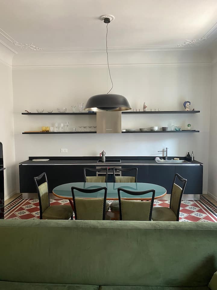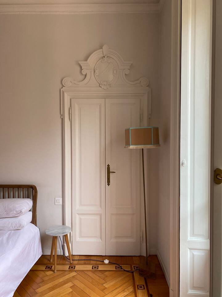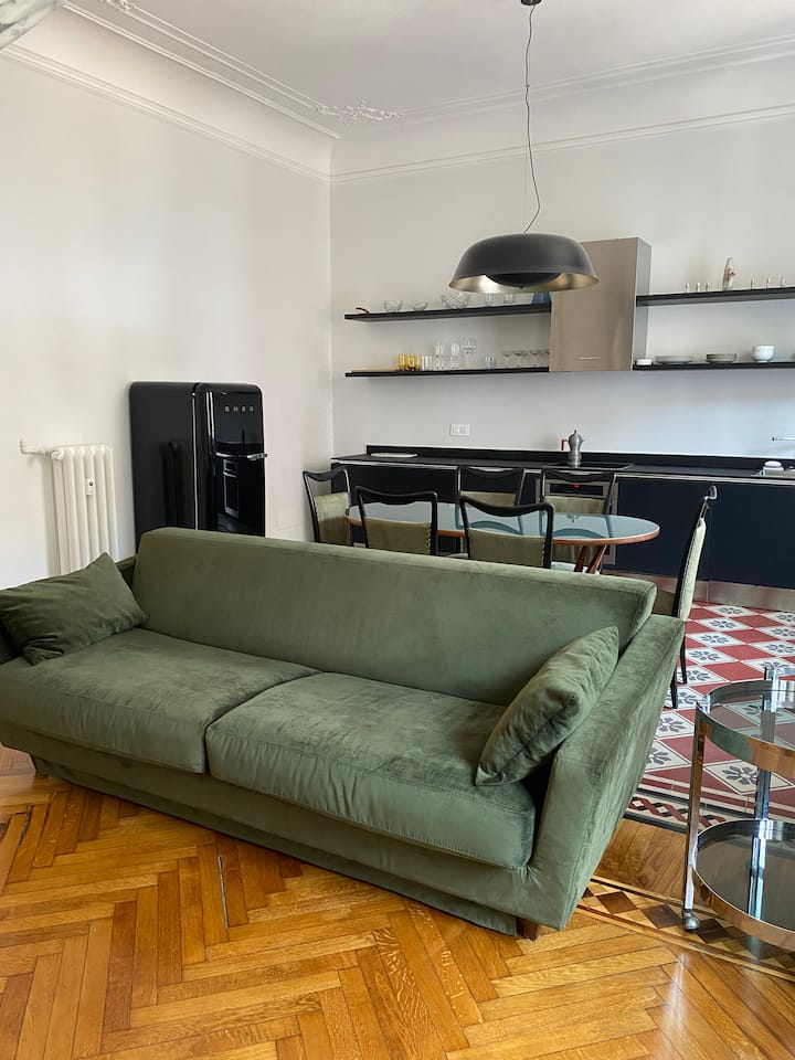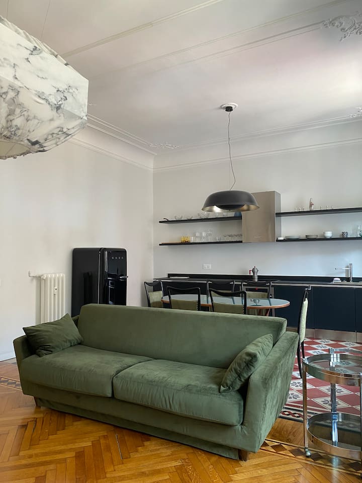 อพาร์ทเมนท์แห่งนี้อยู่บนชั้นสามของอาคารประวัติศาสตร์ซึ่งเป็นอาคารทั่วไปสำหรับมิลานมีเจ้าหน้าที่อำนวยความสะดวกทางเข้าด้านหน้าขนาดใหญ่และทางเข้าทาสี มีลิฟต์และลานบ้าน