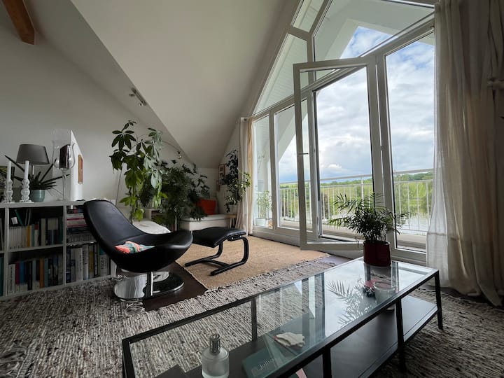ห้องพักสวยในดูเพล็กซ์บนแม่น้ำโมเซล
