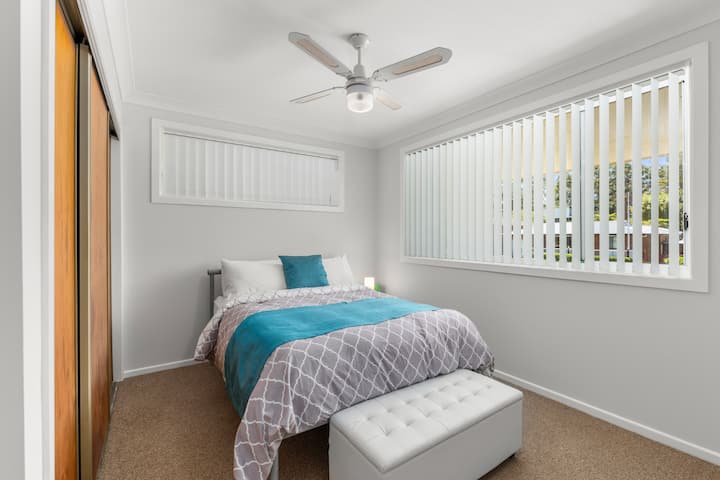 ห้องนอน 2 - มีเตียงขนาดเดียวผ้าปูที่นอนพัดลมเพดานและตู้เสื้อผ้าที่มีพื้นที่แขวนมากมาย มีเตียงแบบพกพาพร้อมอุปกรณ์เสริมสำหรับเด็กและเก้าอี้ทานข้าวเด็กให้ตามคำขอ โปรด BYO ผ้าปูที่นอนของคุณเองสำหรับ porta-cot/bassinet