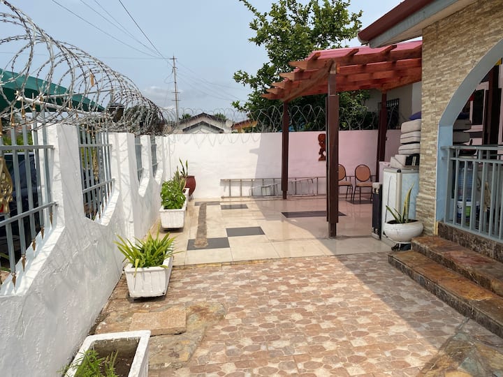 ฉันยังอยู่ใน Airbnb ด้วยชื่อ Akuama Inn ตั้งอยู่ที่สนามบินในกานา