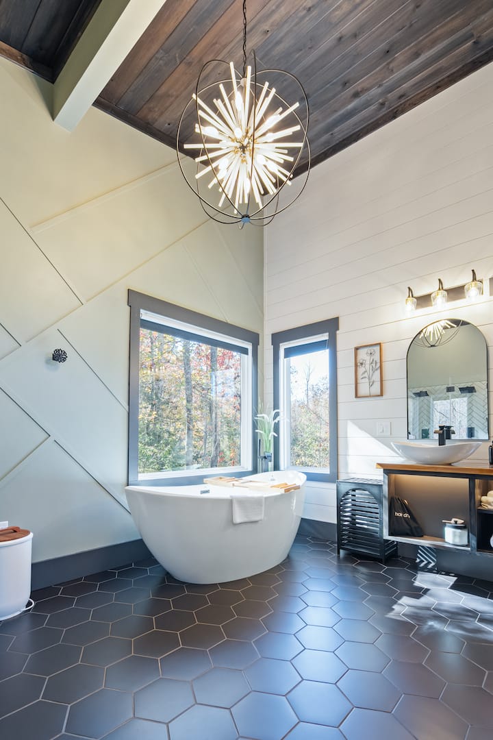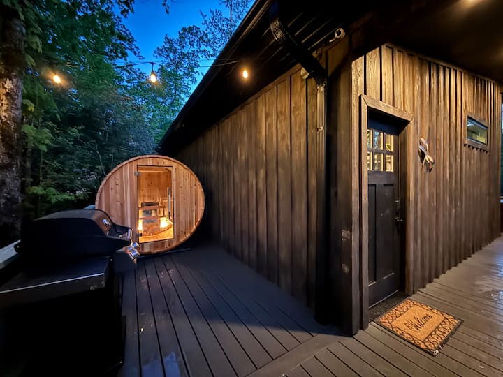หลุมก่อไฟและอ่างน้ำร้อน: ผ่อนคลายริมกองไฟหรือแช่ตัวในอ่างอาบน้ำร้อนใต้แสงดาว พื้นที่นั่งเล่นกลางแจ้งเป็นจุดที่เหมาะสำหรับการเพลิดเพลินกับไวน์สักแก้วหรือเพียงแค่ชมสภาพแวดล้อมที่เงียบสงบเพลิดเพลินกับเสียงเงียบสงบของ Still Creek ที่ไหลลงสู่บ่อน้ำด้านล่าง