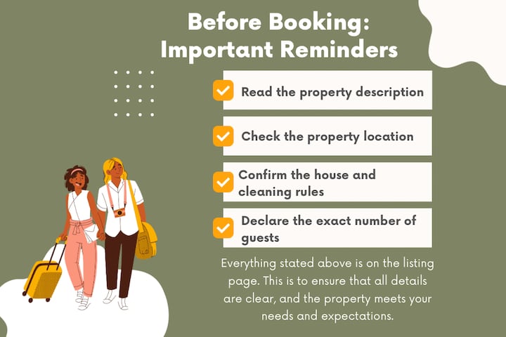 📖 อ่านรายละเอียดที่พัก ทำความเข้าใจกับทำเล และศึกษากฎของที่พักเสมอ เพื่อให้แน่ใจว่าเหมาะกับความต้องการของคุณ