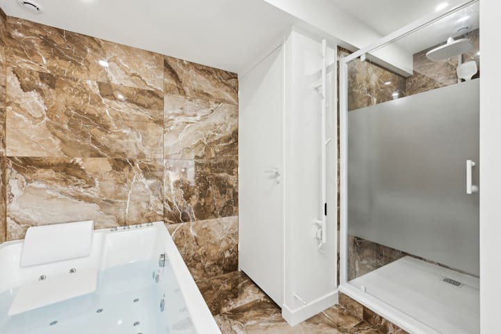 เครื่องทำ💧น้ำอุ่น: ห้องสวีทมีเครื่องทำน้ำอุ่นขนาดใหญ่แต่น้ำร้อนไม่จำกัด เราไม่รับผิดชอบต่อการใช้อ่างน้ำร้อนหรือน้ำในทางที่ผิด การใช้น้ำหรือพลังงานมากเกินไปอาจมีค่าใช้จ่ายเพิ่มเติม