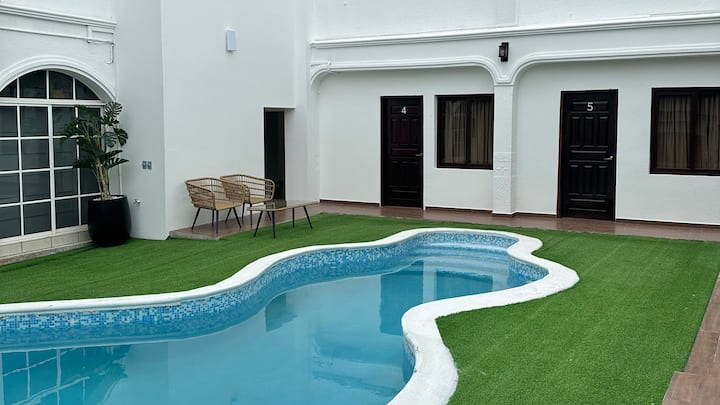 นี่เป็นหนึ่งในที่พักไม่กี่แห่งของย่านนี้ที่มีสระว่ายน้ำ