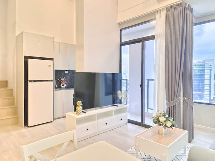 Landmark@MRTA อพาร์ทเมนท์ดูเพล็กซ์/2 ห้องนอน 2 ห้องน้ำ/ที่จอดรถฟรี/ทำอาหารได้/ใจกลางเมือง/ใกล้รถไฟใต้ดิน/ร้านสะดวกซื้อ/B15F