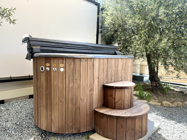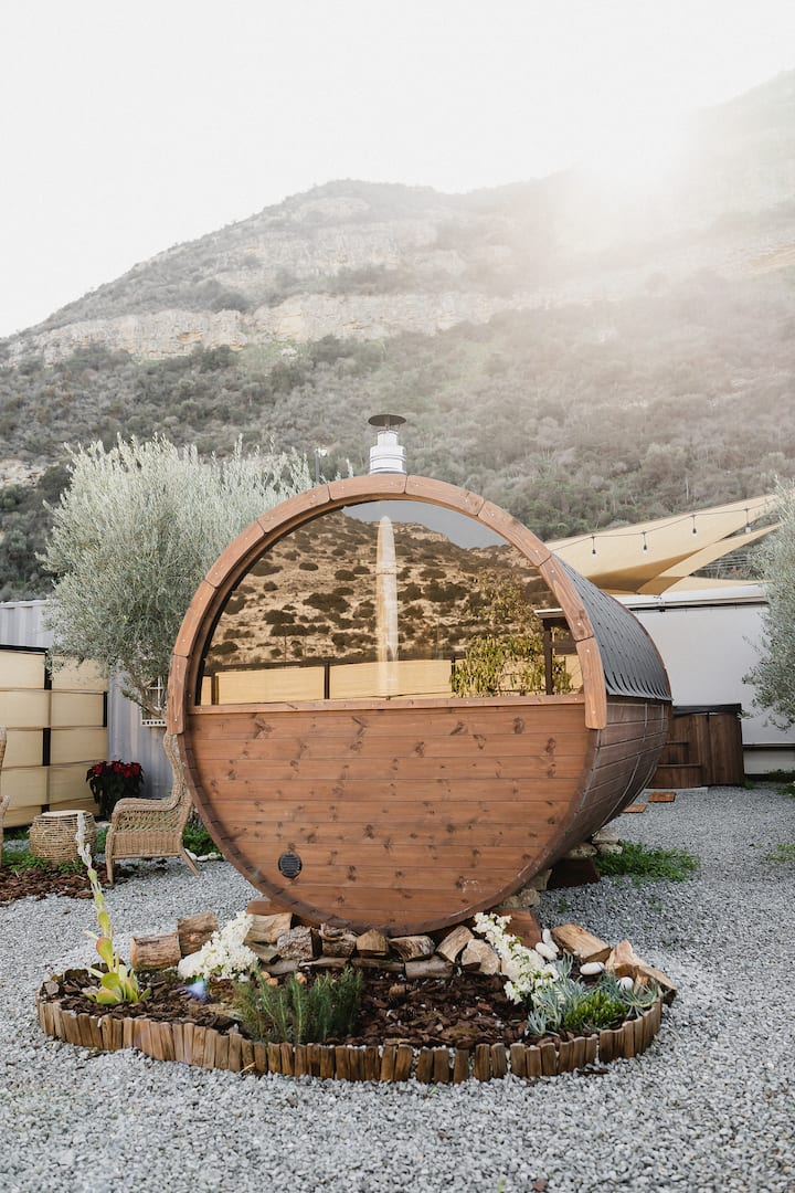 ผ่อนคลายไปกับที่อาบน้ำฝักบัวกลางแจ้งและซาวน่า