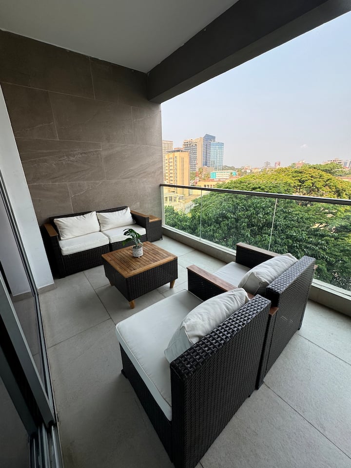 ระเบียงส่วนตัวขนาดใหญ่มีวิวเมืองที่สวยงาม เหมาะสำหรับดื่มกาแฟยามเช้าหรือพักผ่อนยามเย็น