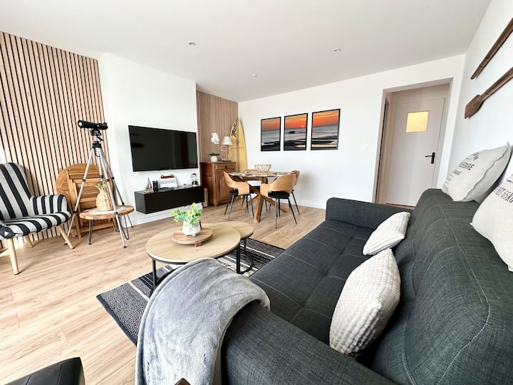 เราภูมิใจที่ได้ต้อนรับคุณเข้าสู่อพาร์ทเมนท์แสนอบอุ่นริมทะเลของเรา ซึ่งได้รับการจัดอันดับ 3 ดาวในปี 2023 และ 2025 โดย PAS-DE-CALAIS TOURISME ตั้งอยู่ใจกลางรีสอร์ทริมทะเลที่มีเสน่ห์ของฮาร์เดโลตและเลอพอร์เตล พวกเขาสัญญาว่าคุณจะได้รับความสะดวกสบาย ความสงบ และการเข้าพักที่น่าจดจำ