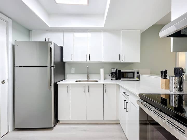 อพาร์ทเมนท์สองห้องนอนที่ปรับปรุงใหม่ ห้องพักนี้มีห้องครัวเต็มรูปแบบพร้อมอุปกรณ์ครบครันห้องนั่งเล่นขนาดใหญ่พร้อมเตียงคิงไซส์ที่สะดวกสบายและเตียงแฝดและห้องน้ำเต็มรูปแบบพร้อมอ่างอาบน้ำและฝักบัว เหมาะสำหรับการเข้าพักรายสัปดาห์หรือรายเดือน