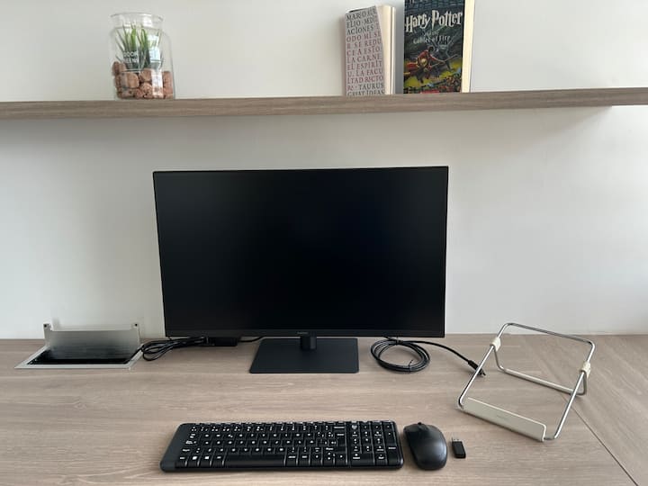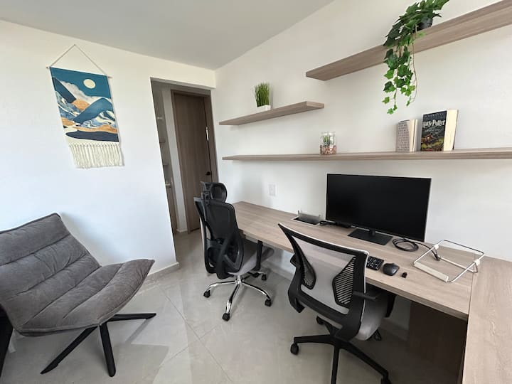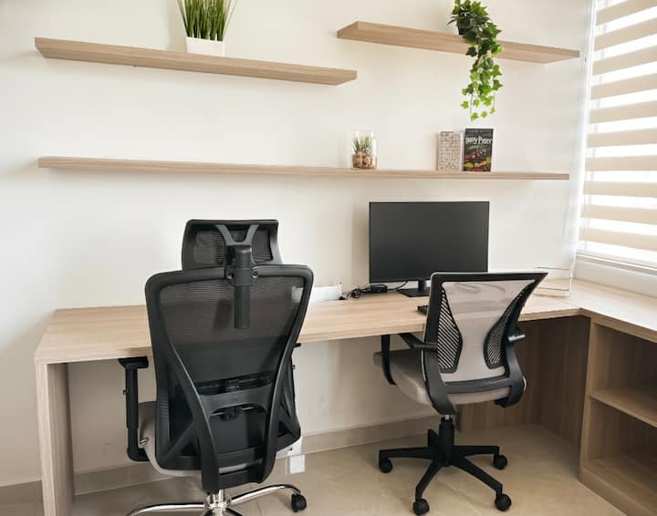 อพาร์ทเมนท์พร้อมทำงานพร้อมโต๊ะคู่และ Wi-Fi เร็ว 600Mb!