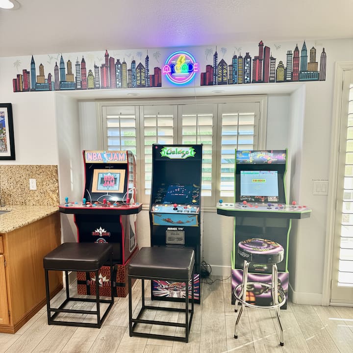 ที่พัก 3 ห้องนอนที่ออกแบบมาอย่างพิถีพิถันนี้ผสมผสานความสะดวกสบาย ความสงบ และความสนุกสนาน มีสระว่ายน้ำส่วนตัวที่มีระบบทำความร้อน + สปา ห้องเล่นเกมในบ้าน ผู้ช่วย Alexa ในทุกห้อง และสิ่งของจำเป็นทั้งหมดสำหรับการเข้าพักระยะยาว เหมาะสำหรับนักเดินทางมืออาชีพ ครอบครัว คู่รัก ครอบครัวที่ย้ายที่อยู่ การเข้าพักตามประกันภัย หรือการเดินทางของบริษัท