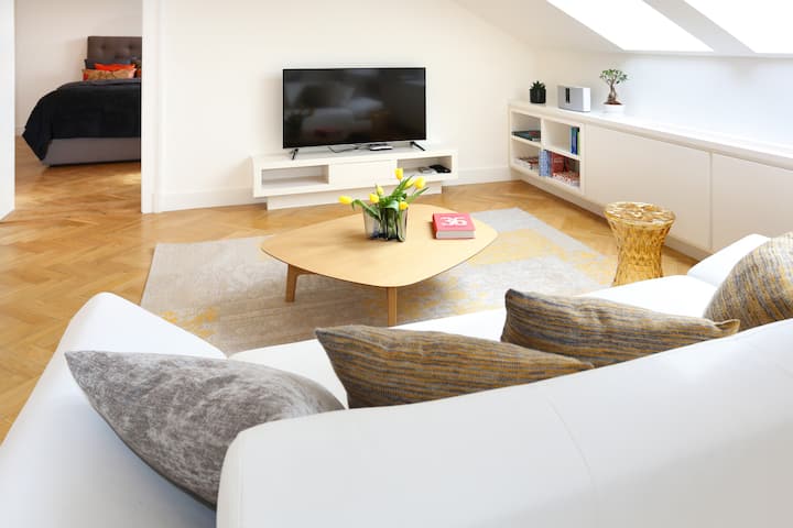 อพาร์ทเมนท์ที่สวยงามและมีแสงแดดส่องถึงใจกลางปราก