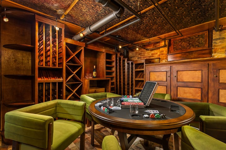 ห้องเก็บ🍷ไวน์พร้อมโต๊ะโป๊กเกอร์: ค้นพบนักชิมไวน์ในตัวคุณในห้องเก็บไวน์ที่มีสไตล์พร้อมโต๊ะโป๊กเกอร์สำหรับค่ำคืนแห่งความสนุกกับเพื่อนๆ