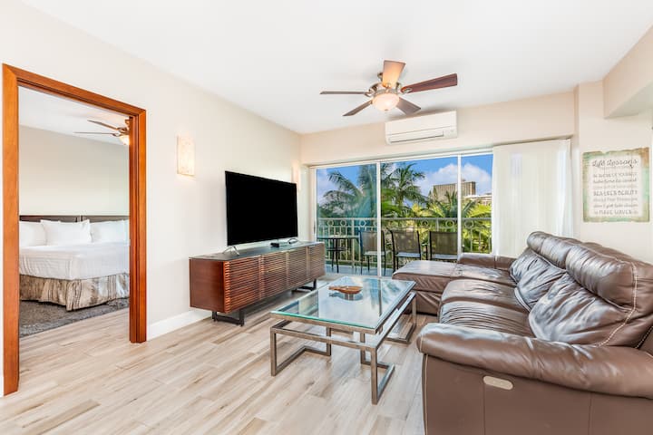 คอนโดหรูห้องนอน 2 ห้อง/ห้องน้ำ 2 ห้องมุมชายฝั่งไวกิกิ