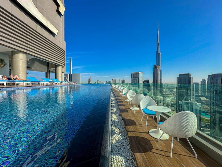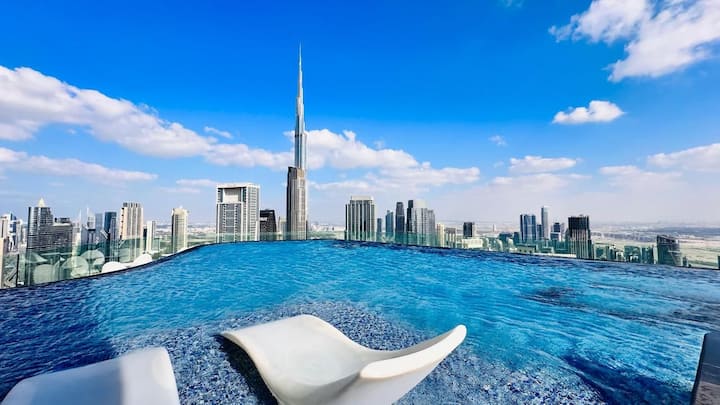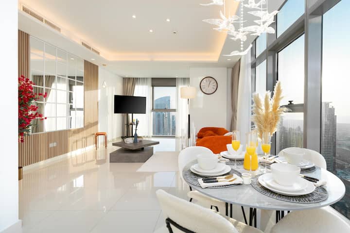 วิวอัศจรรย์ของบูร์จและทะเล | สระว่ายน้ำอินฟินิตี้ | 2 ห้องนอน | ดูไบ